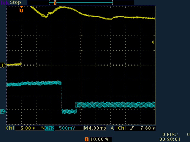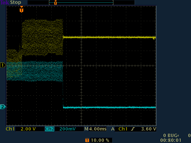 The video above shows the transmitter sequencer installed and running. The sequencer is delaying the bug keying signal to the transceiver until 100 ms after the PTT has been sent to the amplifier. The amplifier PTT is dropped about 2 seconds after the last key closure (this is the KOS (Keyboard Operated Send) delay that is set on the front panel. Front panel LEDs indicate the state of each output SSR. Although not audible in the video, the sequencer includes a piezoelectric transducer on the PCB. This provides 500 Hz CW sidetone. ![]() The image above shows the PCB mounted in the case. Note that in this revision (rev B), the PCB mounting holes did not get drilled. The PCB is held in place by a drop of RTV adhesive on the center PCB mounting post in the enclosure. The front of the PCB is held in place by the bushing for the front panel pot and the LED light pipes. The round black object is a piezoelectric transducer that supplies CW sidetone at 500 Hz. It can be enabled and disabled through a jumper on J1 and also through a command on the terminal. ![]() The above image shows the front panel. The pot at the right sets the KOS dropout delay and includes the power switch. The five indicators are LEDs in series with the output SSRs. The LEDs are 0603 SMT LEDs with light pipes above them to make the LED light appear on the front panel. ![]() The image above shows the rear panel. The USB port is used for power. A terminal program (such as Tera Term, can be used to configure the system. The configuration commands are shown in a screen shot further down this page. The USB port is also used to load new firmware as shown later on this page. The left terminal block is inputs the sequencer. Everything except the KSR Sense is looking for a contact closure to ground. Each input has a 10k pullup to +5V. The KSR sense is opto isolated and is to be wired across a KSR printer (keyboard and selector magents in series). It a 1/4 inch TRS connector is used to plug equipment into the 60 mA loop, a 1/4 inch TRS Y connector such as this. When the keyboard opens, high voltage appears across the KSR sense input for 22 ms or more. This trips the Keyboard Operated Send sequence that switches the amplifier to transmit, delays, then turns on the transmitter and enables the terminal unit transmit. When the printer is receiving data, there is also high voltage across the machine. On a mark to space transition, the selector magnets generate a "flyback" voltage. On a space to mark transition, a high voltage pulse is also generated as the selector magnet current ramps up. These two voltage spikes are considerably shorter than the 22 ms bittime (60 wpm). They are about 2 ms. The software requires a pulse of at least 11 ms to trip the KOS, so KOS is activated on keyboard activity, not on received data. The video above is a quick demo of the preliminary transmitter sequencer. The video says that the transmitter and amplifier drop at the same time when the microphone PTT is released. The current firmware drops the amplifier after the transmitter (default 100 ms). The video is showing a rev A board. It DOES have the three mounting holes, but the footprint for the USB interface chip is wrong. Rev B fixed the footprint but lost the mounting holes. ![]() The image above shows the user interface through the USB interface with Tera Term. The serial port is set to 19.6 kbps, 8N1, XON/XOFF handshake, and a 1 ms character delay. In the setup terminal menu, local echo is enabled (half duplex operation(). Commands are a single letter. If followed immediately by a number (no space or tab) and terminated with a carriage return, the setting is changed to the specified value. If the letter is followed immediately by a carriage return, the current setting is shown. Any changed setting is written to EEPROM and restored on the next power cycle. The image above shows the signal at U2-5 during RTTY reception. The selector magnet flyback voltage on a mark to space transition causes a high voltage across the Teletype turning on the LED in U2, causing the phototransistor to conduct and pull its output low. Note that the line is low for about 2 ms, much shorter than a 22 ms bit time, and much shorter than the 11 ms threshold the Transmitter Sequencer uses to sense Keyboard Operated Send. The image above U2-5 on the transmission of a character by the keyboard. Note that U2-5 is low for about 24 ms (a bit longer than the 22 ms bit time) as the keyboard is open for the start bit. This is longer than the 11 ms threshold for Keyboard Operated Send, so the Transmitter Seqiemcer goes into transmit (brings up the amplifier, waits 100 ms, then brings up the transceiver and puts the terminal unit in transmit). The space to mark transition causes a sudden current change in the selector magnet again causing a flyback voltage. This is the seconds 1 ms low pulse. Each time a space bit is generated by the keyboard (keyboard open circuit), U2-5 again goes low for the bit time, resetting the Keyboard Operated Send dropout timer (front panel adjustable from 0 to 10 seconds). ![]() The Dentron Clipperton-L was in standby and driven with low power RF. The amplifier was then taken out of standby. In the image above, the yellow trace going low is the signal telling the Dentron to go out of standby (RF bypass). The blue trace is the output of an RF detector on the output of the Dentron amplifier. At the beginning of the left end of the blue trace shows the output with the amplifier bypassed. About 10 ms after the amplifier is told to go out of bypass, the bypass relay in the amplifier starts switching leaving no RF output. About 12 ms after the amplifier was told to go out of bypass, the amplifier comes online with some contact bounce for the next millisecond. The amplifier is fully online about 13 ms after the amplifier was told to go online. ![]() The image above shows the amplifier returning to standby (bypass). Once again, the yellow trace is the signal driving the by